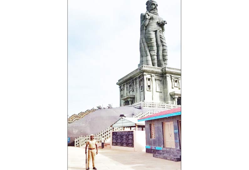 கடலில் இருக்கும் திருவள்ளுவர் சிலை மற்றும் விவேகானந்தர் பாறை ஆகிய இடங்களுக்கு துப்பாக்கி ஏந்திய போலீஸ் பாதுகாப்பு போடப்பட்டுள்ளது.
