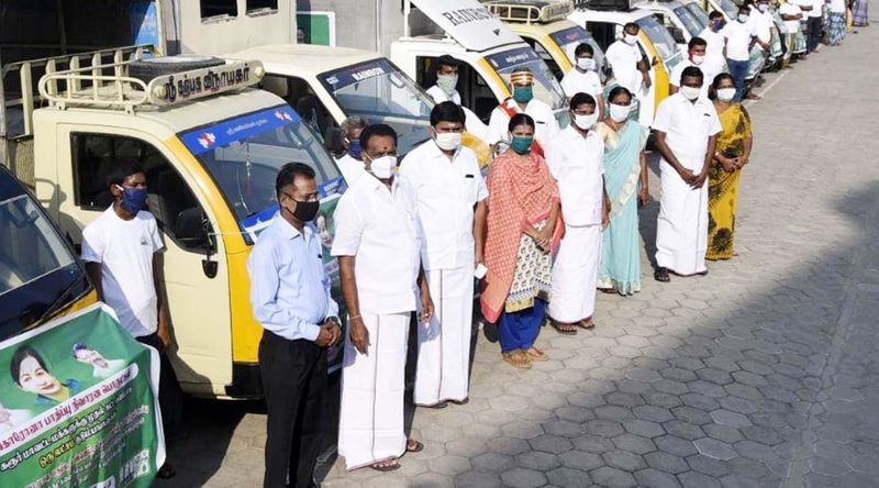 மேலும் கரூர் நகராட்சிக்குட்பட்ட பகுதிகளில் வீடு, வீடாகச்சென்று அமைச்சரின் சார்பில் உணவுக்கான பொருட்கள் வழங்கப்பட்டு வருகின்றது. கரூர் ஊராட்சி ஒன்றியத்திற்குட்பட்ட பகுதி மக்களுக்கு உணவுப்பொருட்கள் கொண்டு செல்லும் வகையில் சுமார் 35 வாகனங்களில் ஒரு வாகனத்திற்கு 150 பைகள் வீதம் மொத்தம் 5,250 பைகளில் உணவுக்கான பொருட்களை அமைச்சர் அனுப்பி வைத்துள்ளார். இதுவரை சுமார் 43,430 குடும்பங்களுக்கு அரிசி மற்றும் மளிகைப்பொருட்களுடன் கூடிய பைகள் வழங்கப்பட்டுள்ளது. தொடர்ந்து மக்களுக்கு உதவும் பணியினை அமைச்சர் விஜயபாஸ்கர் துரிதப்படுத்தியிருக்கிறார்.