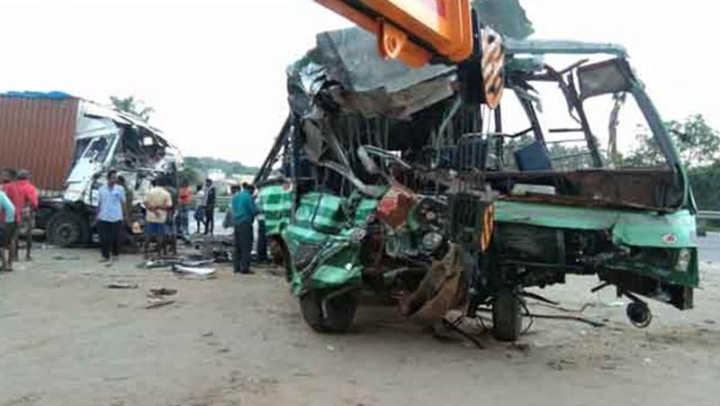 இதில் அரசுப் பேருந்து மற்றும் கண்டெய்னர் லாரியின் முன்பக்கம் அப்பளம் போல் நொறுங்கியது. இந்த விபத்தில் அரசுப் பேருந்தின் ஓட்டுநர், நடத்துனர் மற்றும் பயணி ஒருவர் என 3 பேர் சம்பவ இடத்திலேயே உயிரிழந்தனர். மேலும், பேருந்தில் பயணம் செய்த 6 பெண்கள் உட்பட 34 பேர் படுகாயமடைந்தனர். விபத்து தொடர்பாக போலீசாருக்கு தகவல் தெரிவிக்கப்பட்டது.