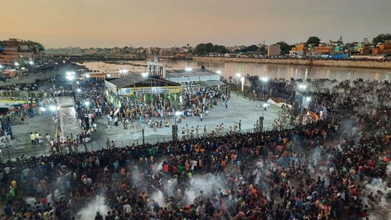 பக்தர்கள் வெள்ளத்தில் மிதந்து வந்த கள்ளழகர் வைகை ஆற்றில் பச்சை பட்டு உடுத்தி தங்கக்குதிரை வாகனத்தில் கம்பீரமாக எழுந்தருளினார்.