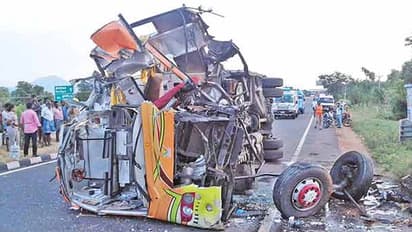 திண்டுக்கல் அருகே ஆம்னி பேருந்து கவிழ்ந்து விபத்துக்குள்ளானது. இந்த விபத்தில் மருத்துவ மாணவி உடல் நசுங்கி பரிதாபமாக உயிரிழந்தார்.