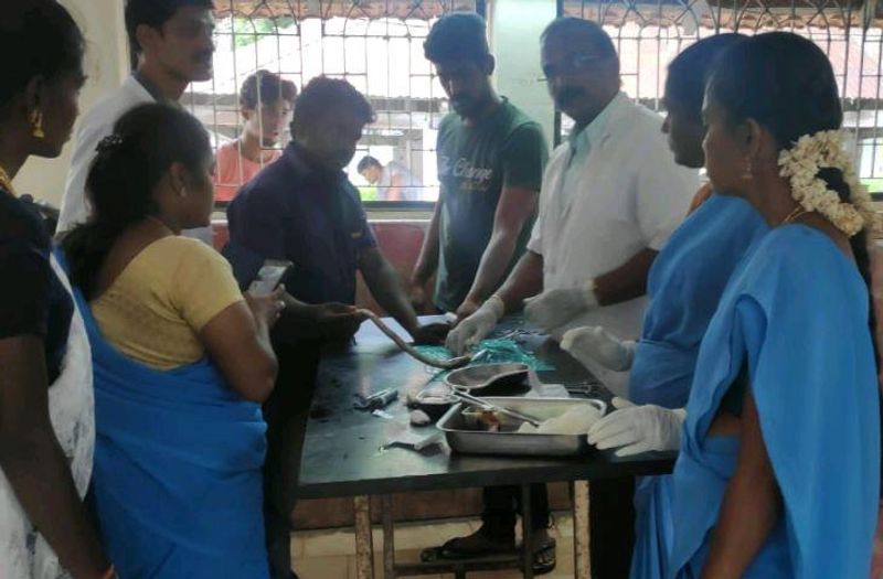 பலனமான காயத்தால் உயிருக்கு போராடி நகர முடியாமல் இருந்துள்ளது. அங்கிருந்தவர்கள் உடனடியாக திருநகரில் இருக்கும் ஊர்வனம் அமைப்பிற்கு தகவல் கொடுத்தனர். விரைந்து வந்த அந்த அமைப்பைச் சேர்ந்தவர்கள், காயம்பட்டிருந்த நல்லபாம்பை மீட்டு கால்நடைமருத்துவமனைக்கு கொண்டு சென்றனர். அங்கு மருத்துவர்கள் பாம்பிற்கு முதலுதவி சிகிச்சை அளித்தனர். காயம் பலமாக இருந்ததால், அறுவை சிகிச்சை செய்ய மருத்துவ குழுவினர் முடிவெடுத்தனர்.