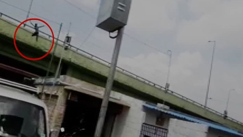 திருப்பூர் பழைய பேருந்து நிலையம் எதிரே உள்ள மேம்பாலத்தின் மேல் ஒரு நபர் ஏறி நின்றிருக்கிறார். இதனைக் கண்ட சிலர் அவர் நிற்பதை வீடியோ எடுக்க தொடங்கினர். மேலும், அவரை கீழே இறங்கும் படியும் வற்புறுத்தினர். ஆனால், யாரும் சொல்லியும் கேட்காடல் மேம்பாலத்திலிருந்து கீழே குதித்துள்ளார். அவர் கீழே விழுந்த சமயம் நல்வாய்ப்பாக ஒரு பேருந்து வந்ததால், அந்த நபர் அப்பேருந்தின் மீது விழுந்தார். இதனால் அவர் சிறிய காயங்களும் அதிஷ்டவசமாக உயிர் தப்பினார்.