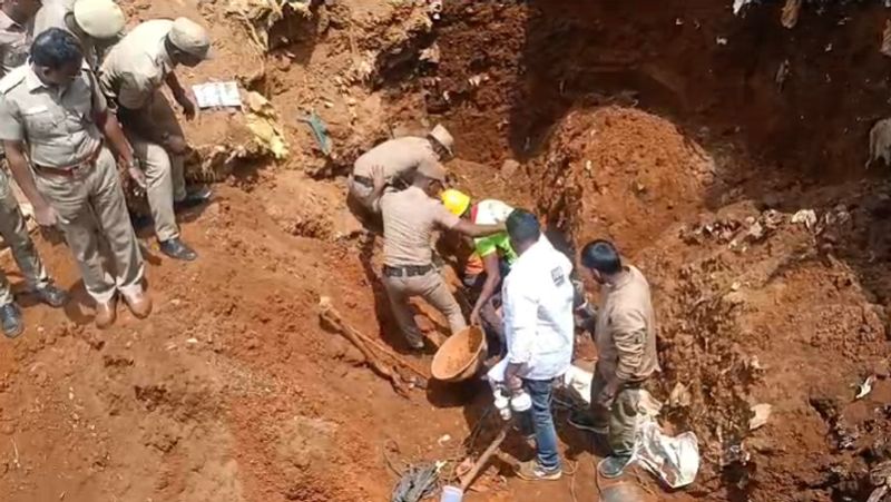 அப்போது திடீரென மண்சரிந்து விழுந்ததில் பணியில் ஈடுபட்டு வந்த ஜார்கண்ட் மாநிலத்தைச் சேர்ந்த ரிஸ்வான் (22) மற்றும் ஜாகீர் (25) ஆகியோர் மண்ணில் புதைந்தனர். இதனையறிந்த மற்ற பணியாளர்கள் உடனடியாக காவல்துறையினர் மற்றும் தீயணைப்பு துறையினருக்கு தகவல் தெரிவித்தனர். உடனே சம்பவ இடத்திற்கு வந்த தீயணைப்புத் துறையினர் மற்றும் காவல் துறையினர் ஜேசிபி இயந்திரத்தை கொண்டு மண்ணில் புதைந்த கூலித்தொழிலாளர்களை மீட்கும் பணி தீவிரமாக ஈடுபட்டனர் தீவிரமாக ஈடுபட்டனர்.