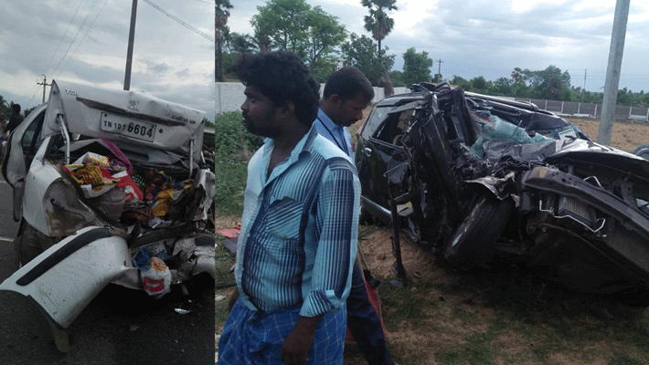 இச்சம்பவத்தை அடுத்து இருபுறமும் அடுத்தடுத்து வந்த 5 கார்கள் ஒன்றன்பின் ஒன்றாக மோதி விபத்துக்குள்ளானது. இந்த விபத்தில் புதுக்கோட்டை மாவட்டம் துடையூரை சேர்ந்த கார் ஓட்டுநர் ரங்கராஜ், சிதம்பரம், நாகரத்தினம் உட்பட 5 பேர் சம்பவ இடத்திலேயே உயிரிழந்தனர். 15 பேர் படுகாயமடைந்து உயிருப்பு போராடிக்கொண்டிருந்தனர்.