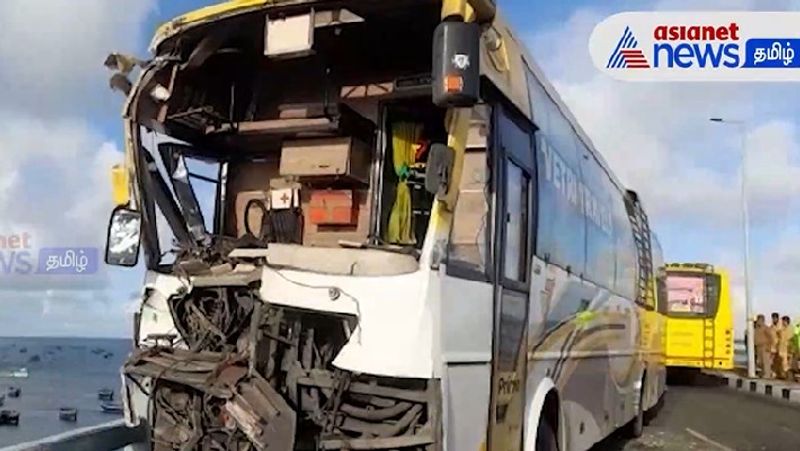 பாம்பன் பாலத்தில் அரசு பேருந்தும் தனியார் ஆம்னி பேருந்து நேருக்கு நேர் மோதி விபத்துக்குள்ளானது. இந்த விபத்தில் ஆம்னி பேருந்து பாலத்தின் தடுப்பு மீது மோதி நின்றதால் பெரும் உயிர் சேதம் தவிர்க்கப்பட்டது.