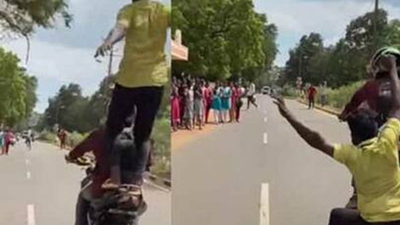 சிவகங்கை மாவட்டம், காரைக்குடி கல்லூரி சாலையில் அழகப்பா பல்கலைக்கழகம் உட்பட பல கல்வி நிலையங்கள் உள்ளன. கடந்த மாதம் 30ம் தேதி அழகப்பாபுரம் காவல் நிலையம் எதிரே, அரசு கலைக்கல்லூரி பஸ் ஸ்டாப்பில் நின்று கொண்டு இருந்த மாணவிகளை கவர, டூவீலரில் வந்த இளைஞர்கள் சாகசம் செய்தனர். இதனை பின்னால் வந்த மாணவர்கள் வீடியோ எடுத்துள்ளனர். அப்போது டூவீலரின் பின்புறம் அமர்ந்திருந்த பாலிடெக்னிக் மாணவர் ஒருவர் திடீரென எழுந்து சீட்டில் ஏறி நின்றார்.