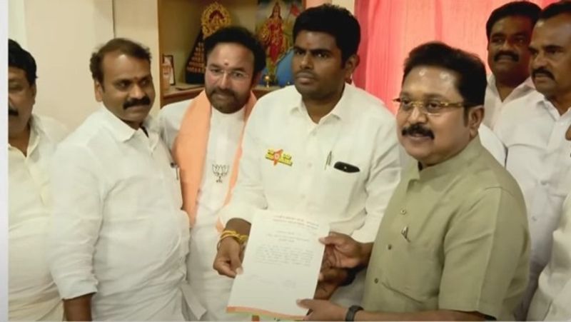 தேனியில் டிடிவி. தினகரனை தோற்கடிக்க வேண்டும் என அதிமுக, திமுக வேட்பாளர்கள் ஒன்று சேர்ந்து இருக்கிறார்கள் என அண்ணாமலை கூறியுள்ளார்.