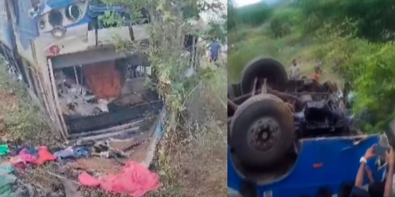 எதிரே வேகமாக வந்த கார் அரசுப் பேருந்தின் மீது மோதியுள்ளது. அரசுப் பேருந்து ஓட்டுநர் பேருந்து காருடன் மோதுவதைத் தவிர்க்க முயற்சி செய்துள்ளார். ஆனால், அதற்குள் கார் வந்த வேகத்தில் பேருந்து மீது மோதி நசுங்கியது. ஓட்டுநரின் கட்டுப்பாட்டை இழந்த பேருந்து சாலையோரப் பள்ளத்தில் பாய்ந்துவிட்டது.