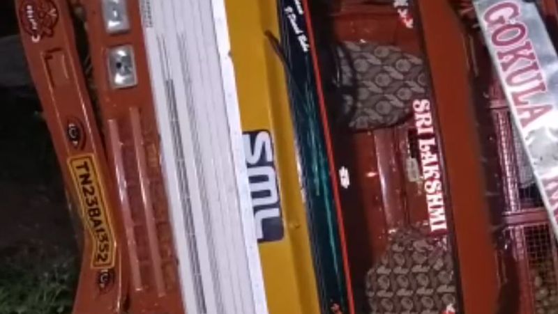 வேலூரில் இருந்து திருப்பத்தூர் நோக்கி 30கும் மேற்பட்ட பயணிகளுடன் ஏற்றிக்கொண்டு தனியார் பேருந்து ஒன்று நேற்று நள்ளிரவு சென்றுக்கொண்டிருந்தது. பேருந்து ஆம்பூர் அடுத்த மின்னூர் பகுதியில் உள்ள சென்னை - பெங்களூர் தேசிய நெடுஞ்சாலையில் சென்று கொண்டிருந்த போது கிருஷ்ணகிரி நோக்கி முன்னாள் சென்ற லாரி மீது எதிர்பாராத விதமாக மோதியது.
