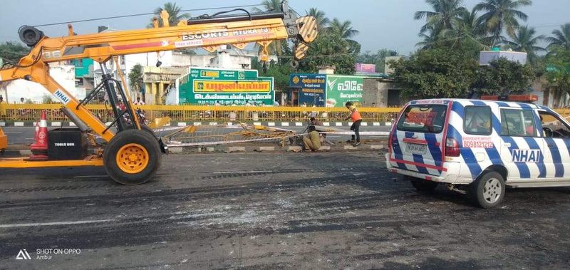 இரு சாலைகளுக்கும் இடையே தடுப்புகள் இருந்தன. இந்தநிலையில் சென்னை நோக்கி சென்ற லாரி திடீரென ஓட்டுனரின் கட்டுப்பாட்டை இழந்து தாறுமாறாக சென்றது. தடுப்புகளில் மோதி உடைத்து அருகே இருந்த சாலைக்கு சென்ற லாரி, ஓசூர் நோக்கி சென்றுகொண்டிருந்த லாரி மீது பயங்கரமாக மோதி கவிழ்ந்தது. இதில் இரு லாரிகளின் முன்பக்கமும் சுக்குநூறாக உடைந்தது. இந்த விபத்தில் ஒருவர் பலத்த காயமடைந்து உயிருக்கு போராடினார்.