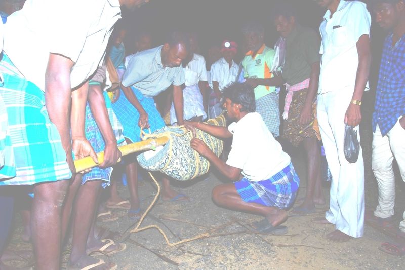 கிராமத்திற்கு செல்வதற்கு முறையான சாலை வசதிகள் இல்லாததால் அதற்கு மேல் ஆம்புலன்ஸ் செல்ல முடியவில்லை. இதனால் முனுசாமியின் உடலை துணியில் சுற்றி மூங்கில் கம்பு ஒன்றில் தொட்டில் உருவாக்கி இரண்டு பேர் சுமந்து சென்றனர். இரவு நேரம் என்பதால் தீபந்தத்தின் உதவியுடன் கிராம மக்கள் மாறிமாறி முனுசாமியின் உடலை சுமந்து நள்ளிரவுக்கு மேல் மலை உச்சிக்கு கொண்டு சென்றனர். இன்று அவருக்கு இறுதிசடங்கள் நடைபெறுகிறது.