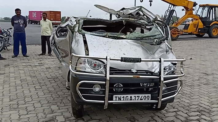 இதனால் கார் நிலை தடுமாறி, சாலையில் கவிழ்ந்து உருண்டு 15 அடி ஓடைப் பள்ளத்தில் தலைகுப்புற கவிழ்ந்துள்ளது. இதில் ஏழுமலை, பாலாஜி, சித்திரா, ஜெயக்கொடி, ஆகிய 4 பேரும் உடல் நசுங்கி சம்பவ இடத்திலேயே உயிரிழந்தனர். ஓட்டுனர் சிவக்குமார், சாந்தி ஆகிய இருவர் படுகாயத்துடன் உயிருக்குப் போராடிக் கொண்டிருந்தனர்.