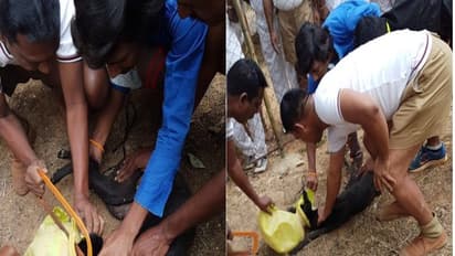 இதையடுத்து, அங்கு சென்ற 15 போலீசாரும் நாயைத் தேடிக்கண்டுபிடித்து, முதலில் நாய் சுவாசிக்க குடத்தில் துளையிட்டனர். அதன் பின் இரும்பு அறுக்கும் ‘பிளேடு’ மூலம் குடத்தின் ஒவ்வொரு பகுதியாக அறுத்து நாயை பத்திரமாக மீட்டனர். இதில் நாய்க்கு சிறிய அளவிலான காயம் ஏற்பட்டு இருந்ததையடுத்து, அதை கால்நடைமருத்துவமனைக்கு கொண்டு சென்று சிகிச்சை அளித்தனர்.