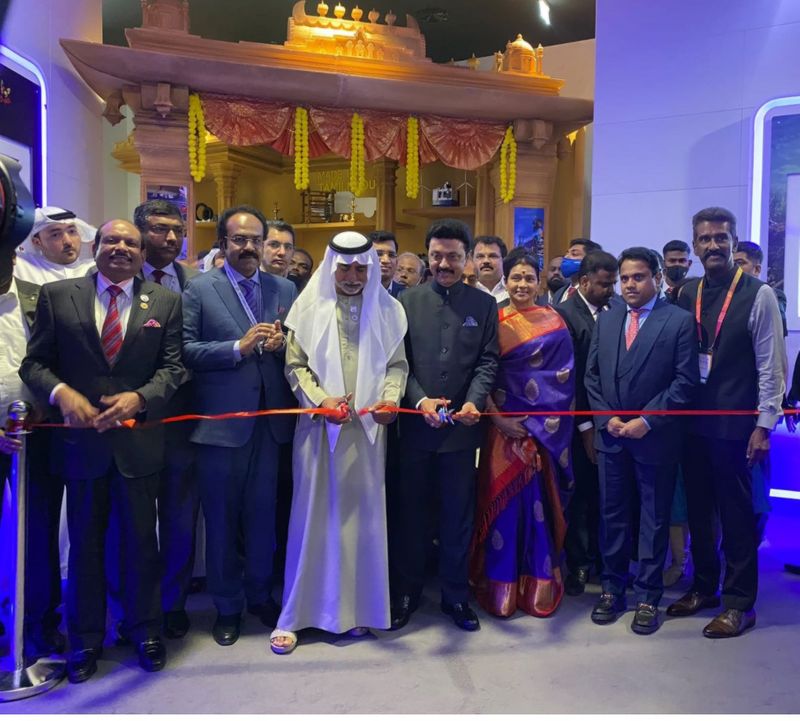 இதனையடுத்து அன்று மாலை, சர்வதேச கண்காட்சியில் தமிழ்நாடு அரங்கினை முதலமைச்சர் மு.க.ஸ்டாலின் ரிப்பன் வெட்டி திறந்து வைத்தார். அவருடன் அவரது மனைவி துர்கா ஸ்டாலின், அமைச்சர் தங்கம் தென்னரசு உள்ளிட்ட அதிகாரிகள் உடன் இருந்தனர்.