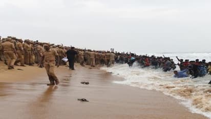 இதையொட்டி சென்னை காமராஜர் மெரினா கடற்கரையில் ஜல்லிக்கட்டு போராட்டத்தில் ஈடுபட்ட இளைஞர்கள், மாணவர்களை போலீசார் வலுக்கட்டாயமாக வெளியேற்றி வருகின்றனர். இதனால் கடலுக்குள் இறங்கி போராட்டக்காரர்கள் தங்கள் போராட்டத்தை அறவழியில் தொடர்ந்து வருகின்றனர். தண்ணீரில், கை கோர்த்தபடி மனித சங்கிலி போராட்டம் நடத்துகின்றனர்.