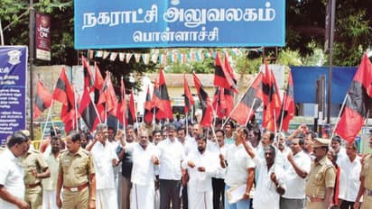அதன்படி நேற்று காலை 11 மணிக்கு பொள்ளாச்சி வெங்கடேஸ்வரா காலனியில் உள்ள கட்சி அலுவலகத்தில் இருந்து ம.தி.மு.க-வினர் ஊர்வலமாக புறப்பட்டு நகராட்சி அலுவலகத்தை நோக்கி வந்தனர். நகராட்சி அலுவலகம் முன்பு வந்தபோது அவர்களை காவலாளர்கள் தடுப்பு வேலி அமைத்து தடுத்தனர்.