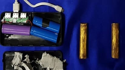 600 கிராம் எடையுடைய 2 தங்க பேட்டரி செல்கள் சென்னை விமான நிலையத்தில் பறிமுதல் செய்யப்பட்டுள்ளது. மேலும் செல்போனுக்கு சாா்ஜா் ஏற்றும் பவா் பேங்கிற்குள் பேட்டரி செல்களுக்கிடையே மறைத்து வைத்து எடுத்து வந்தது தெரிவந்தது.