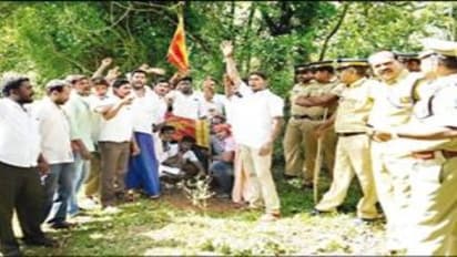 அங்கு, தமிழக எல்லையில் வருவாய்த் துறை அதிகாரிகள் நில அளவைக் கல் ஊன்றியிருந்த பகுதியில் கட்சிக் கொடியை ஊன்றி வைத்து ஆர்ப்பாட்டத்தில் ஈடுபட்டனர்.