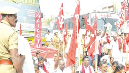 "பொதுத்துறை நிறுவனங்களை தனியாருக்கு தாரை வார்ப்பதை மத்திய, மாநில அரசுகள் கைவிட வேண்டும்" உள்ளிட்ட பல்வேறு கோரிக்கைகளை வலியுறுத்தி போராடிய தொழிற்சங்கங்களை சேர்ந்த 67 பேரை காவலாளர்கள் கைது செய்தனர்.