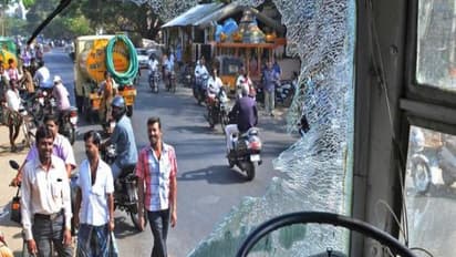 வேலூரில் இருந்து ஆரணி சென்ற தனியார் பஸ் அடுக்கம்பாறை அருகே கல்வீசி உடைக்கப்பட்டது. போளூர் பஸ் நிலையத்தில் இருந்து திருவண்ணாமலைக்கு புறப்பட்ட அரசு பேருந்தை மடக்கி சிலர் தாக்க முற்பட்டனர். போலீசார், அவர்களை சமரசம் செய்து தாக்குதலை தடுத்தனர்.