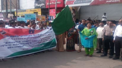 இந்த பேரணியில் 5000-க்கும் மேற்ப்பட்ட பள்ளி மற்றும் கல்லூரி மாணவ மாணவியர்கள் கலந்து கொண்டனர். இதேபோன்று பேரணிகள் காஞ்சிபுரத்தில் 13 இடங்களில் துவங்கப்பட்டு ஏராளமானோர் கலந்து கொள்கின்றனர்.
