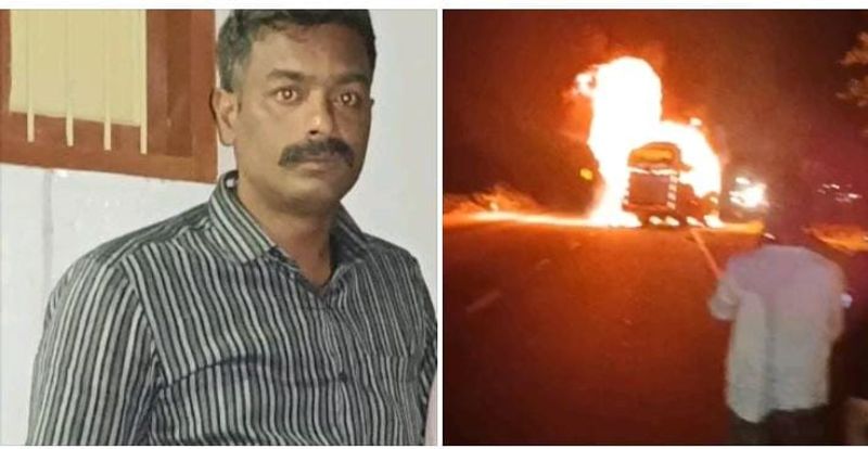அடுத்த ஒரு சில நிமிடங்களில் பேருந்தில் தீ பற்றி எரிய தொடங்கியது.இதனால் அதிர்ச்சி அடைந்த பயணிகள் அலறி துடித்தனர். உடனடியாக சுதாரித்த ஆம்னி பேருந்து ஓட்டுநர் பேருந்தில் இருந்த பயணிகள் அனைவரையும் அவசர அவசரமாக இறக்கிவிட்டார். பயணிகள் அலறியடித்து பேருந்தை விட்டு அவசர அவசரமாக இறங்கி ஓடினர். சற்று நேரத்தில் ஆம்னி பேருந்து முழுவதும் தீப்பற்றி எரிந்தது. இந்த விபத்தில் பேருந்தில் சென்ற அனைவரும் அதிர்ஷ்டவசமாக உயிர் தப்பினர். அதே நேரத்தில் இருசக்கர வாகனத்தில் சென்று பேருந்தின் மீது மோதிய காவலர் ராமகிருஷ்ணனுக்கு பலத்த அடிபட்டதால் அவரால் எழுந்து செல்ல முடியாததால்,