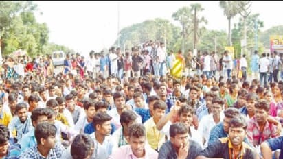 பின்னர், 500-க்கும் மேற்பட்ட மாணவ - மாணவிகள் கல்லூரியைவிட்டு வெளியே வந்து வல்லம் எண்-1 சாலையில் அமர்ந்து மறியல் போராட்டத்தைத் தொடர்ந்தனர். இந்தப் போராட்டத்திற்கு இந்திய மாணவர் சங்க மாவட்டச் செயலாளர் அரவிந்த்சாமி தலைமை வகித்தார்.