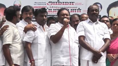 அப்பொழுது பேசிய முன்னாள் வனத்துறை அமைச்சர் திண்டுக்கல் சீனிவாசன் "ஸ்டாலினுக்கு தைரியம் இருந்தால் மீண்டும் 234 தொகுதிகளிலும் தேர்தல் நடத்த வேண்டும் என்றும், அப்படி நடத்தினால் அவருக்கு டெபாசிட் காலியாகும் என்றும் மிகவும் ஆக்ரோஷமாக பேசிக் கொண்டிருந்தார். அப்பொழுது திடீரென்று ஸ்டாலினை வசை பாடி கொண்டிருந்த அதே நேரத்தில் "மீண்டும் தமிழகத்தில் ஸ்டாலினை முதல்வராக்குவோம்" என்று கூறி பேசினார்.
