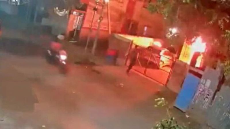 இந்நிலையில் இரவு 7.40 மணியளவில் 2 பேர் கொண்ட கும்பல் டூ வீலரில் வந்து 3 பெட்ரோல் குண்டுகளை கார் ஷெட்டில் வீசியதில் சரக்கு வாகத்தின் மேல் விழுந்து ஒன்றும், மற்றொன்று வெளியே விழுந்தும் வெடித்தது. இதில் வெடிக்காத மற்றொரு பெட்ரோல் குண்டு ஒன்று கார்ஷெட்டின் உள்ளே விழுந்தது.
