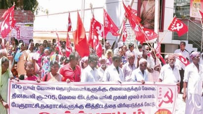 இந்த ஆர்ப்பாட்டத்தில், "100 நாள் வேலை திட்டத்தில் உள்ள தொழிலாளர்கள் அனைவருக்கும் வேலை வழங்க வேண்டும்,