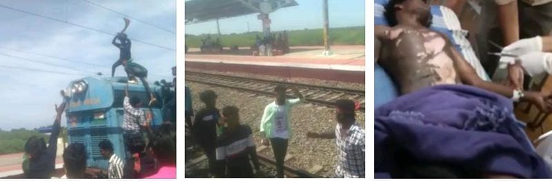முதலுதவி சிகிச்சைக்கு பின் மேல்சிகிச்சைக்காக மதுரைக்கு அனுப்பி வைக்கப்பட்டது. அஞ்சலி செலுத்த வந்த இளைஞர் ரயில் எஞ்சின் மீது ஏறியபோது மின்சாரம் தாக்கி தூக்கி வீசப்பட்ட சம்பவம் பரபரப்பு ஏற்படுத்தி உள்ளது. இந்த சம்பவம் தொடர்பாக ரயில்வே போலீசார் விசாரணை நடத்தி வருகின்றனர்.