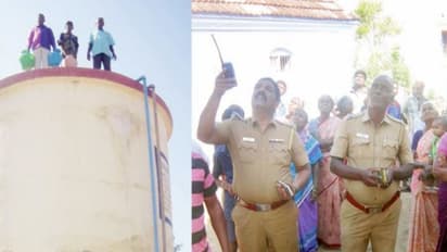 நாமக்கல்லில் குடிநீர் கேட்டு 50 அடி உயர மேல்நிலை நீர் தேக்க தொட்டியின் மீது ஏறி நின்று மூன்று பேர் தற்கொலை மிரட்டல் விடுத்ததால் பரபரப்பு ஏற்பட்டது.