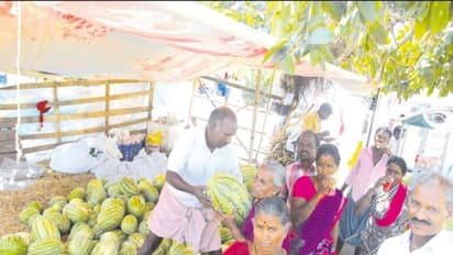 வெயிலின் தாக்கத்தினை பொருட்படுத்தாது நடந்து செல்லும் மக்கள், மாணவ - மாணவிகள் ஆகியோர் தண்ணீர் தாகத்தினை போக்க தர்ப்பூசணியை தான் தேடி சென்று வாங்கி சுவைக்கின்றனர்.