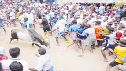 சீறிப்பாய்ந்த காளைகளை அடக்கினர். சில காளைகள் வீரர்களின் கைக்கு பிடிபடாமல் தூக்கி வீசி பந்தாடியது.