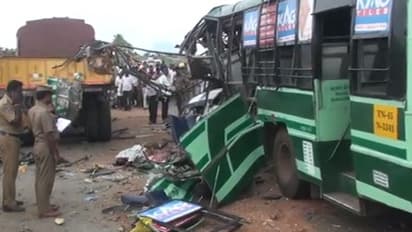 திண்டுக்கல் அருகே அரசு பேருந்துடன் லாரி மோதிய விபத்தில் 5 பேர் பரிதாபமாக உயிரிழந்தனர்.
