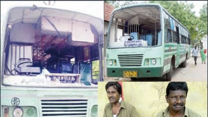 தூத்துக்குடி அருகே உள்ள முள்ளக்காட்டை கடந்து பேருந்து சென்று கொண்டிருந்தது. அப்போது எதிரே மோட்டார் சைக்கிளில் மூன்று மர்ம நபர்கள் வந்தனர். அவர்கள் திடீரென்று பேருந்தின் முன்பக்க கண்ணாடி மீது கற்களை வீசிவிட்டு மோட்டார் சைக்கிளில் தப்பிச் சென்றுவிட்டனர்.