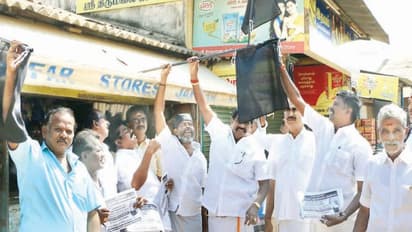 அதன்படி ஆங்கில புத்தாண்டு தினமான நேற்று தஞ்சாவூர் மாவட்டம், கீழவாசல் சரபோஜி சந்தை, பழைய பேருந்து நிலையம், புதிய பேருந்து நிலையம், பள்ளியக்கிரகாரம், கரந்தை பூக்காரத்தெரு, ரெயிலடி ஆகிய பகுதிகளில் உள்ள பெரும்பாலான கடைகளில் கருப்புக்கொடி ஏற்றப்பட்டிருந்தது.
