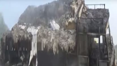 இதில் பஞ்சு ஏற்றிவந்த லாரி முழுவதுமாக எரிந்து சேதமானது. இதில் கோவை கீழமேடு பகுதியை சேர்ந்த ஓட்டுனர் உட்பட மூன்று பரிதாபமாக சம்பவ இடத்திலேயே உயிரிழந்தனர்.