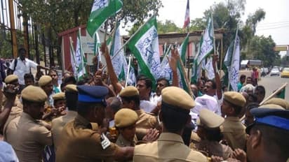 அதனைத் தொடர்ந்து போராட்டக்காரர்கள், ரயில் மறியல் செய்ய முயன்றபோது விவசாயிகள் அனைவரும் கைது செய்து அருகில் உள்ள திருமண மண்டபம் ஒன்றில் அடைக்கப்பட்டனர்.