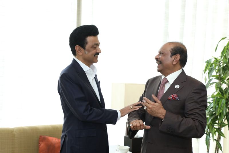 சென்னை விமான நிலையத்திலிருந்து புறப்பட்ட முதல்வர் ஸ்டாலின், அமைச்சர்கள் பொன்முடி, ஐ.பெரியசாமி, துரைமுருகன் உள்ளிட்டோர் பூங்கொத்துகள், சால்வைகள் கொடுத்து வாழ்த்தி வழியனுப்பி வைத்தனர். துபாயில் சென்றடைந்த முதல்வர் மு.க.ஸ்டாலினை, துபாய்க்கான இந்திய தூதர் ஜெனரல் வரவேற்றார்.