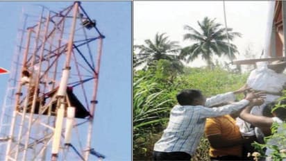 இதையடுத்து தீயணைப்பு வீரர்கள் செல்போன் கோபுரத்தின் மீது ஏறும் முயற்சியை கைவிட்டனர்.