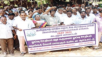 பணி ஓய்வு பெற்ற பணியாளர்களுக்கு கருணை ஓய்வூதியம் வழங்க வேண்டும்” என்ற கோரிக்கைகளை வலியுறுத்தினர். இந்த கோரிக்கைகள் நிறைவேற்றப்படாமல் ஏழு ஆண்டுகளுக்கு மேலாக நிலுவையில் இருக்கிறது என்பது குறிப்பிடத்தக்கது.