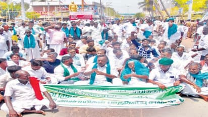 விவசாயிகள் வாங்கிய அனைத்து பயிர்க் கடன்களையும் தள்ளுபடி செய்ய வேண்டும்” உள்ளிட்ட 12 அம்ச கோரிக்கைகளை வலியுறுத்தப்பட்டன. முழக்கங்களும் எழுப்பப்பட்டன.