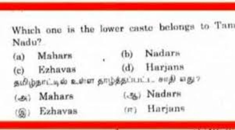 மேலும் படிக்க:தமிழகத்தில் தாழ்த்தப்பட்ட சாதி எது.? பெரியார் பல்கலை. தேர்வின் கேள்வியால் சர்ச்சை...! கட்சி தலைவர்கள் ஆவேசம்