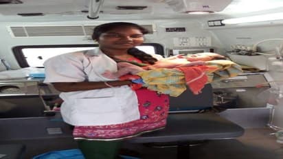 பிரசவ வலி அதிகமானதால், துடித்துடித்த ராஜேஸ்வரிக்கு, ஆம்புலன்ஸில் வந்த பெண் மருத்துவ உதவியாளர் ஆர்.சிந்துஜா பிரசவம் பார்த்தார்.