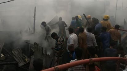 இதை பார்த்ததும், குடிசை வீடுகளில் இருந்த பொதுமக்கள் வெளியே அலறியடித்து கொண்டு ஓடினர். தண்ணீர் ஊற்றி தீயை அணைக்க முயன்றும் முடியவில்லை. அனைத்து குடிசைகளுக்கும் தீ வேகமாக பரவியது.