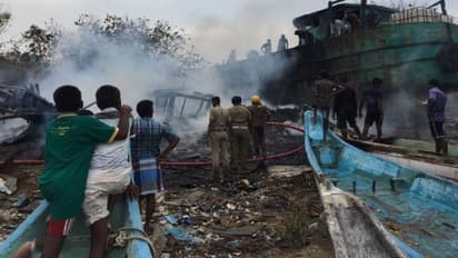 சென்னை காசிமேடு துறைமுகத்தில் 6 மீன் பிடி படகுகளுக்கு மர்ம நபர்கள் சிலர் தீ வைத்ததில் துறைமுகமே புகைபடலமாக காட்சி அளித்தது.