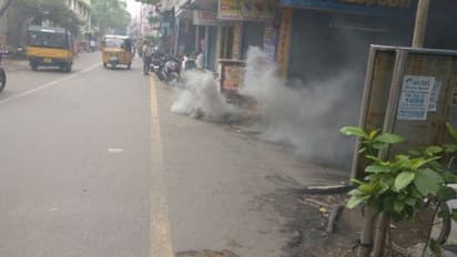 எஸ்என் செட்டி தெருவில் இருந்து ஜிஏ ரோடு - எம்சி ரோடு சந்திப்பின் எதிரில் தொலைபேசி இணைப்பகம் உள்ளது. இதன் எதிரில் உள்ள சிறுநீர் கழிப்பிடத்தின் அருகில், திடீரென இன்று காலை சுமார் 7 மணியளவில் தார்ச்சாலையில் இருந்து கரும்புகை வந்தது.