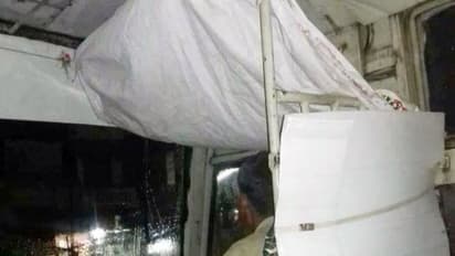 பிளாஸ்டிக், தார்ப் பாய்களைப் போட்டு மழை நீர் ஒழுகுவதில் இருந்து தன்னைக் காத்துக் கொள்ள படாத பாடு பட்டிருக்கிறார். ஓட்டுநருக்கே இந்த நிலைமை என்றால்...பயணிகளின் நிலைமை...?